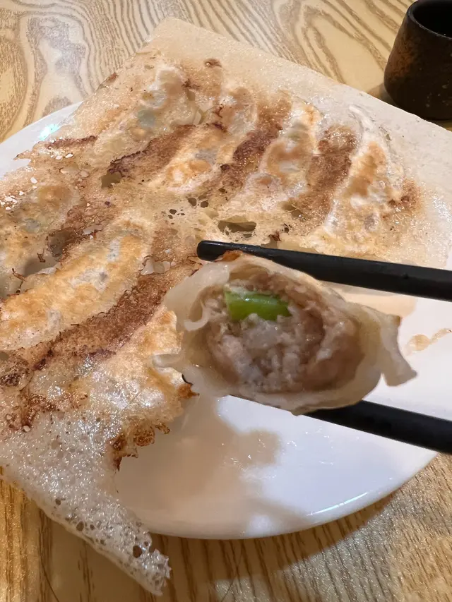 日式蒜芯豬肉餃上桌時竟自帶BGM——薄如蟬翼的餃子皮在光线下透出翡翠內餡,咬下那瞬耳邊彷彿響起中華小當家主題曲!蒜香與豬肉鮮甜在舌尖爆破,腦海瞬間綻放櫻吹雪,靈魂直接被這「餃子界松露」轟上雲端!