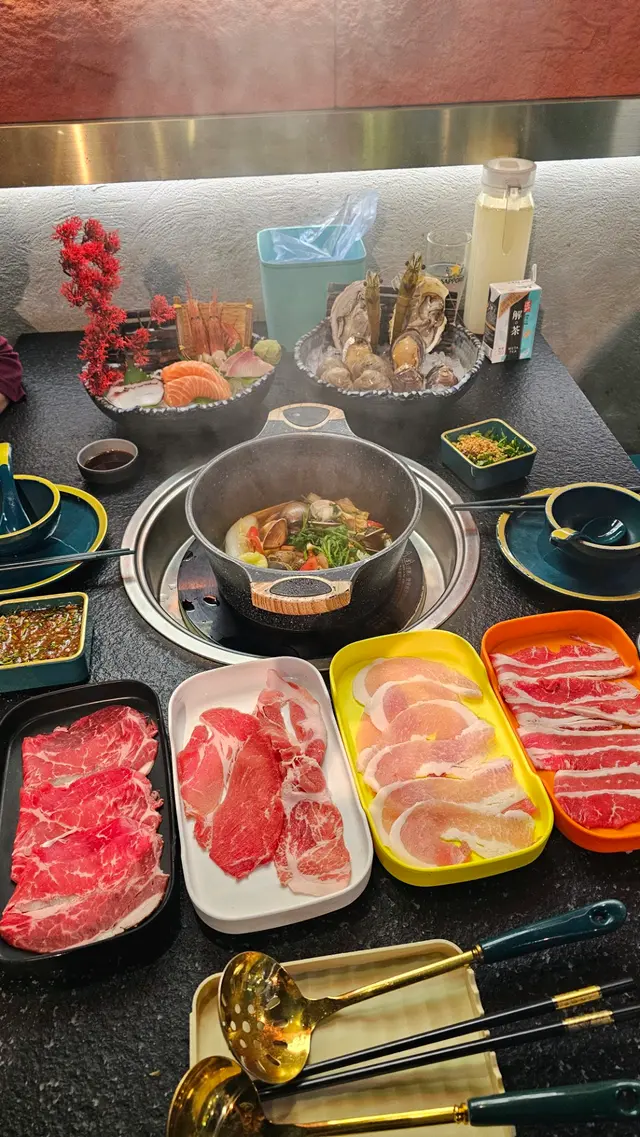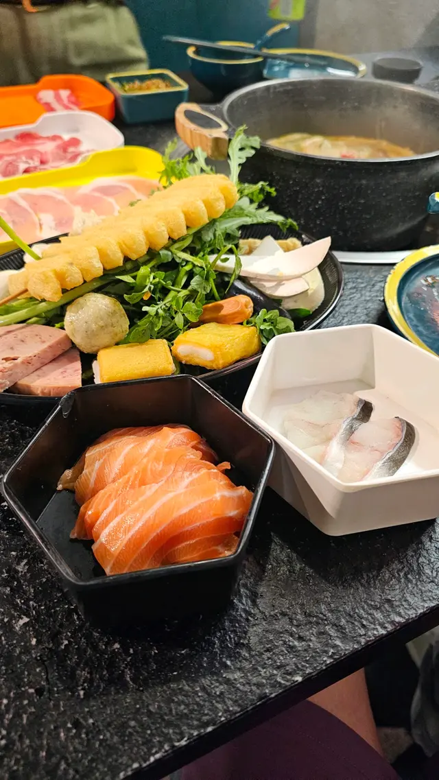 自助區邊爐配料都好多選擇,而肉類肥牛、 牛板鍵、黑豚肉都滿足到我既口癮。