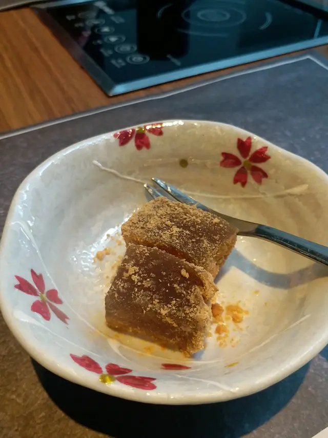 甜品是黃豆粉黑糖蕨餅,微甜清香,整理上食物令人十分令人滿意。