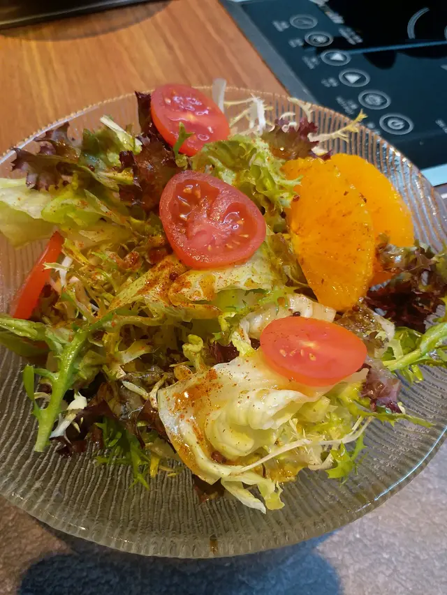 先講一下前菜水果沙律是有兩片超甜的橙片,十分甜美,配上新鮮清爽的沙律菜,好開胃呀。 醃製醬汁茄子都很香甜,麵豉湯清甜配上番茄更加美味。