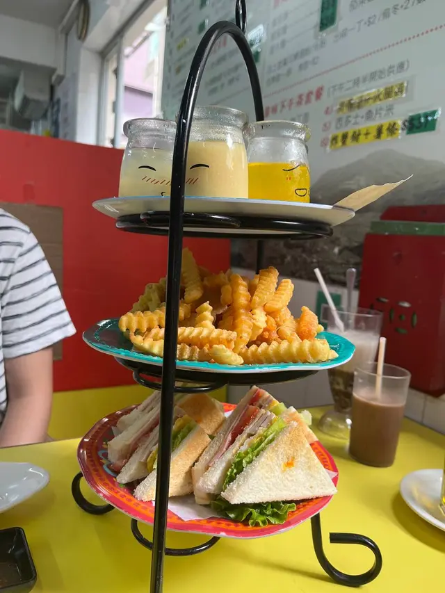 落單之後3 杯野飲就好快到啦,但係我地等極都等唔到個set黎到,我地就懷疑緊係咪太多人叫呢個3層架,而佢架既數量又有限。正當我地懷疑緊既時候就有一對客人離開,而佢地台上個架就俾人收走左。如是者,我地過左幾分鐘就見到我地既野食了。