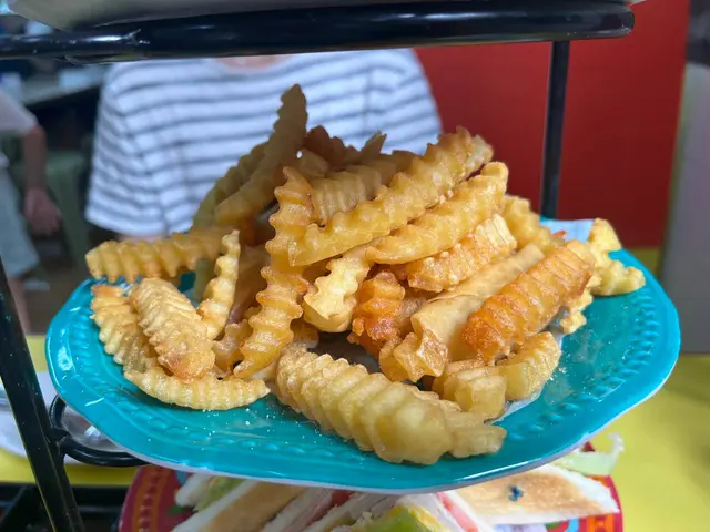 中間個層就有大量既既薯條同埋咖哩角,仲有幾條天婦羅蝦。可以話既係,佢全部炸物都炸到好脆仲要係熱口既,應該係即炸既。可惜既係佢既天婦羅蝦外皮既粉十分厚而中間隻蝦好細隻,所以我食落去就好似食左舊粉咁。而薯條同咖哩角就不過不失,有點兒似灣仔點心出品既感覺。