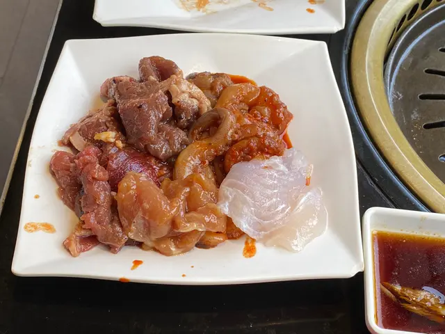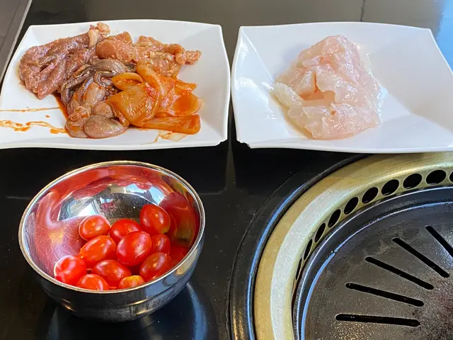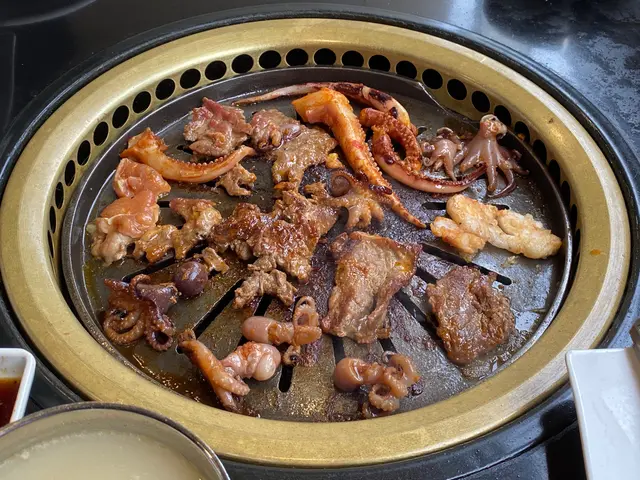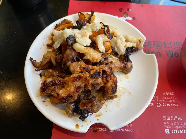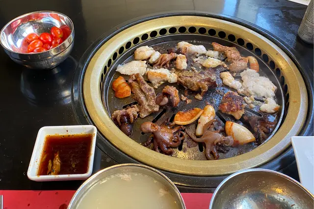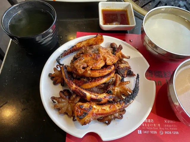 服務員帶位,坐了座位之後就出去沙律吧取食物,食物有燒烤食材和熟食,燒烤食材例如有牛肉,牛柳,牛扒,豬扒,豬頸肉,雞肉,鴨腎,小八爪魚,魷魚片,魷魚鬚,鱈魚片等,熟食例如有人蔘雞湯,中湯,韓式海鮮湯,碗仔翅,薯條,炒飯,