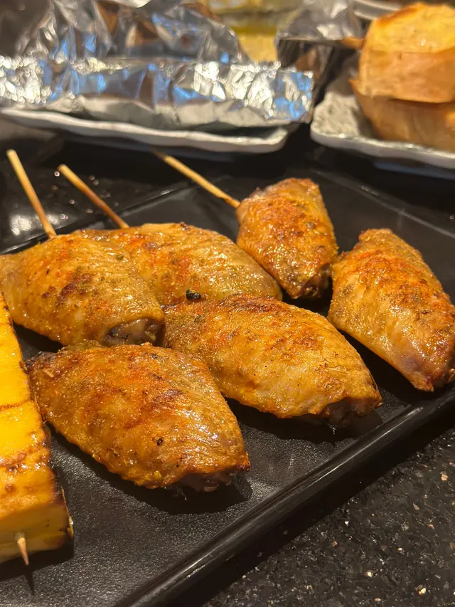 豚肉蘆筍卷更是驚喜,焦香的豬肉把蘆筍的清甜牢牢鎖住,一口一個根本停不下;爆汁的炭燒雞翼、嫩到入口即化的鹽燒帶子,連芝士煙肉卷都鹹香得剛好 。最後來份燒野菜解膩,從演唱會散場的熱