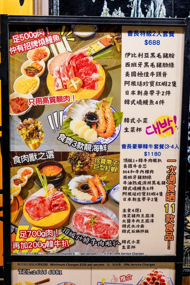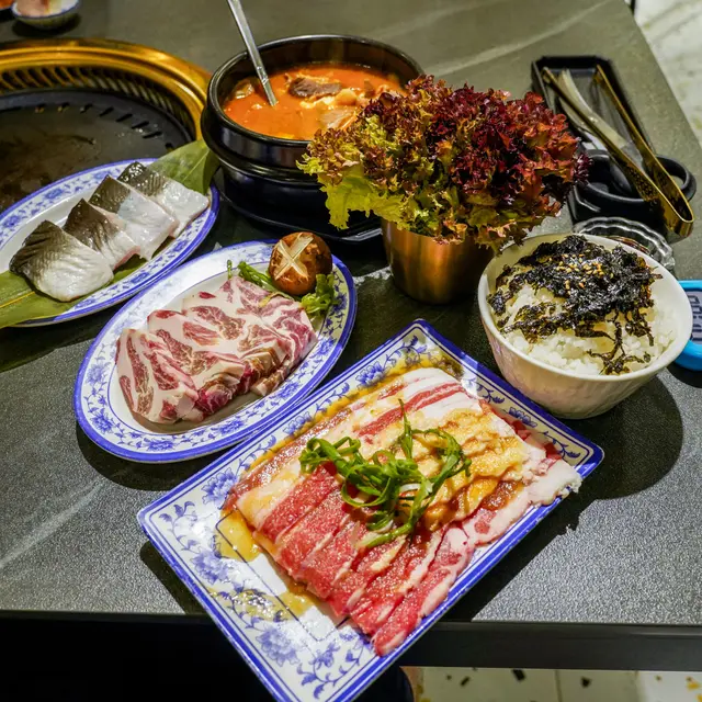 一間之前就被朋友推薦嘅韓式燒肉餐廳,今日終於有機會過黎開餐😄今次我地一共叫左韓式燒鰻魚(4件)($148)、熟成西班牙黑毛豬梅頭肉($108)、韓式醬汁牛五花($68)、生菜($20)、大醬豆腐牛肉湯($118)、麻油紫菜飯($28)、爆打香水檸檬茶700ml($48)