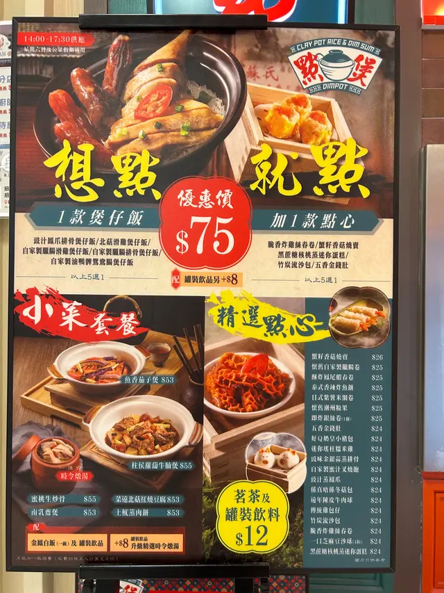 見到個tea 好抵食,下午茶至到5點半,$75 有煲仔飯連個點心。我地由5點鍾開始排,見條隊有幾個人掛緊,諗住實等到入去食tea.