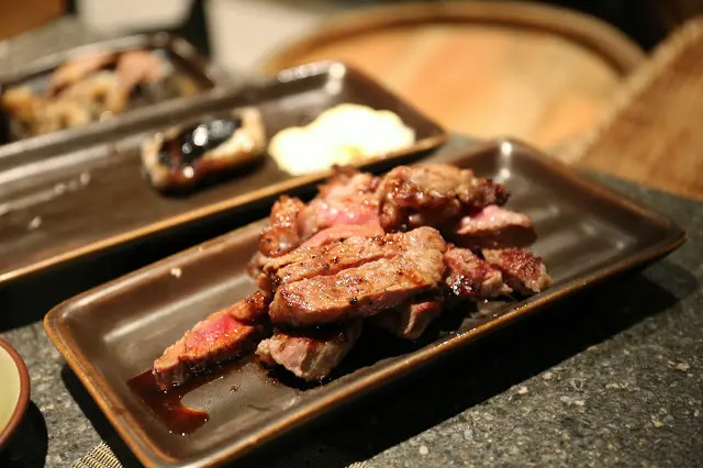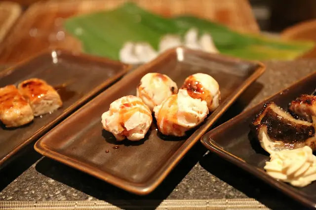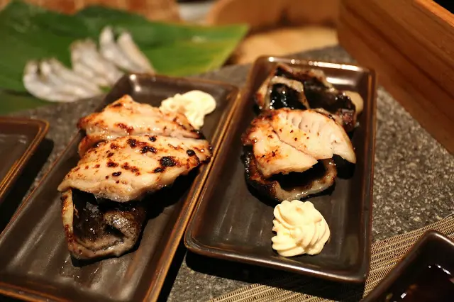 又吃了蟹籽沙律開胃後,就開始一連串的爐端燒美食!所有食物即點即燒,不過除了首輪要熱爐要等較長時間,之後下單大概十分鐘就由師傅燒好遞到面前,效率很高。
