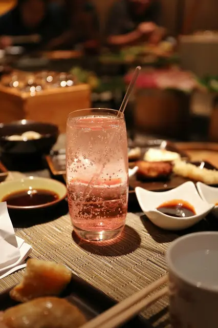對了,午餐也包果汁、汽水、各式梳打任點任飲,這天老公要了一杯桃味梳打,淺粉紅色十分迷人呢。