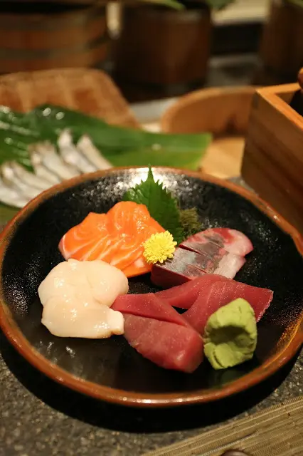 首先是位上的一次性刺身,內容包括三文魚、吞拿魚、池魚及帆立貝,其中最美妙絕對是鮮甜軟糯的帆立貝,好好好吃啊!我與老公每人兩件太滿足,然後也要開始其他食物。