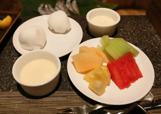 任食甜品也有三款,包括士多啤梨雪莓娘、北海道3.6牛奶布甸,以及雜錦生果碟,每款都來一點後,也是時間埋單離開了!