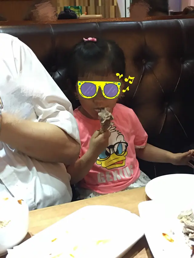 看我的姨㽒女拿著鴨脾吃得多滋味!小朋友不會説謊,片皮鴨真的很好吃