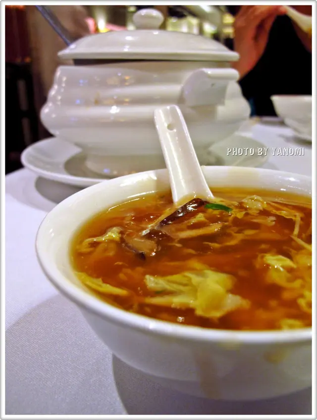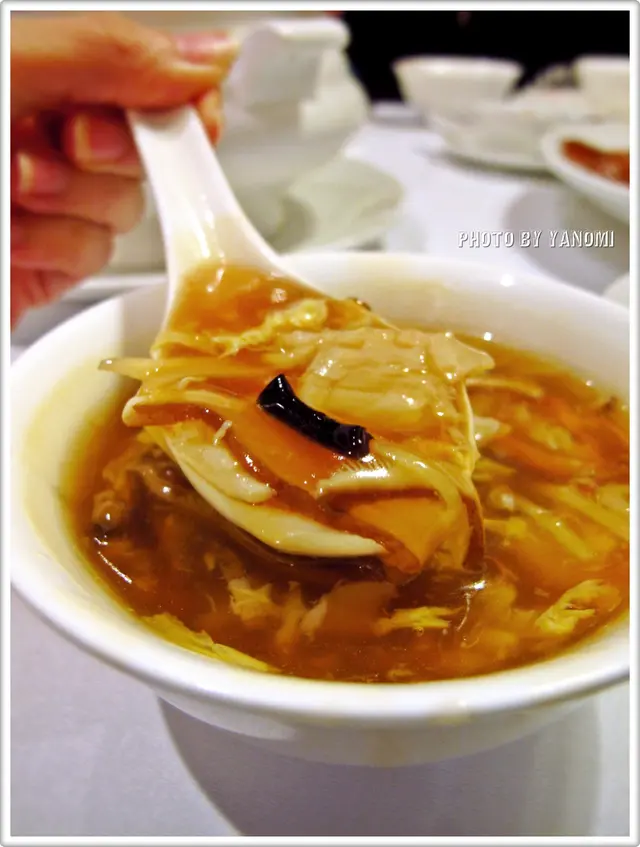 羹料有"魚肉..蛋花..筍絲..冬菇絲"