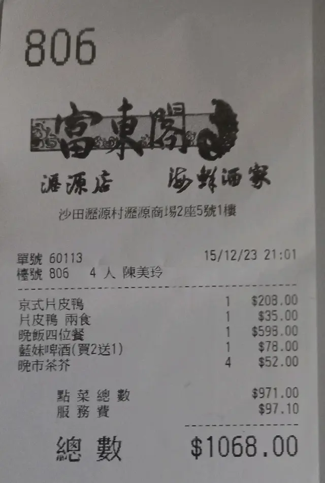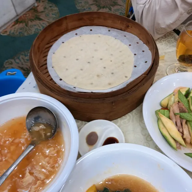片皮鴨OK👍小菜亦可以😁 揾食肥華等级42023-12-164K 浏览 关注 12月15日有相識四十多年好友做東,讌請揾食肥華及兩位識於微時嘅老朋友,在此店食晚飯,敘舊,隊啤,吹水,嚟得此店食飯就一定要食此店招牌名物,片皮鴨,不負所望今餐此店呢份片皮鴨,亦算OK,而隨鴨而上的個籠,包鴨,簿餅皮,每塊都有一張大蒸籠紙相隔,方便顧客包鴨點醬進食,更顯此店細心,此點值得一讚,而今晚其他小菜,味道亦恰如屋邨街坊酒楼水準,比上足比下有餘,而價錢亦係合理屋邨街坊價,值得此店成為沙田,人氣爆場酒楼👍👍👍121以上食记乃用户个人意见 , 并不代表OpenRice之观点。赞好分享片皮鴨OK👍小菜亦可以😁 富東閣海鮮酒家 https://s.openrice.com/QrLT00IDF00检举 张贴 评分4味道3环境4服务3卫生5抵食用餐途径堂食