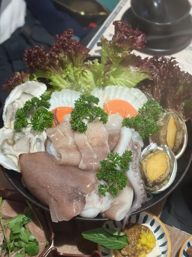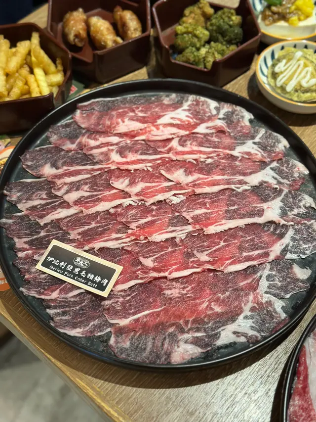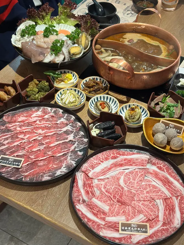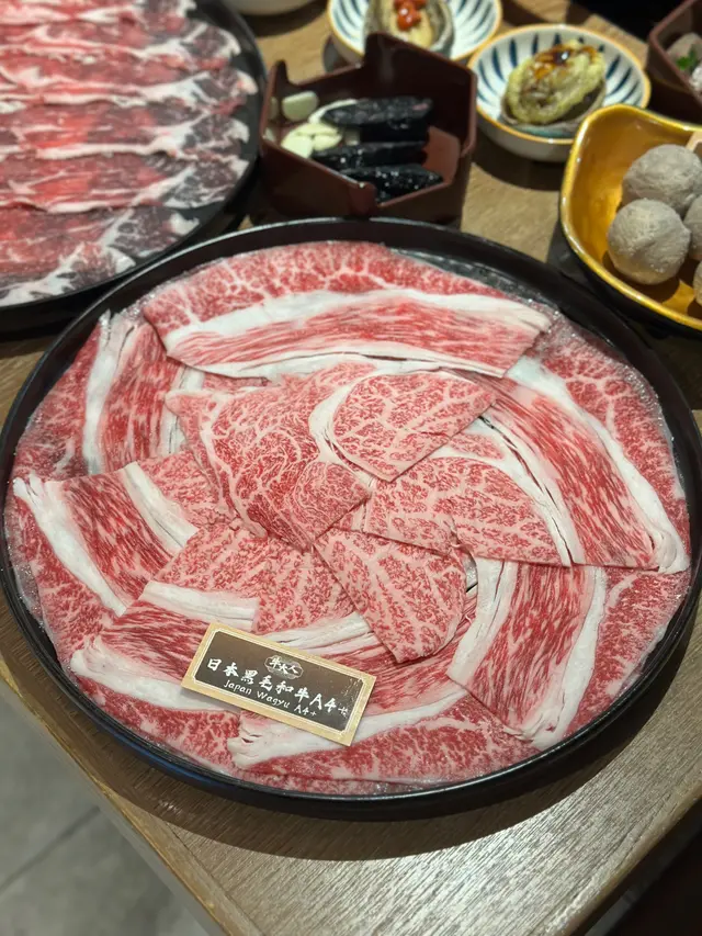 日本黑毛和牛A4+ 套餐會送澳洲M9和牛牛丸2粒同海鮮拼盤!仲會有日本黑毛和牛A4+、伊比利亞黑毛豬梅肉、鮮甜鮑魚任食,真係好豐富!和牛滿滿油花,肉質軟腍,入口即化,令人回味!