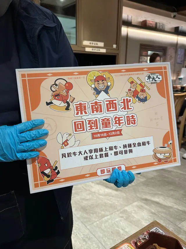 用餐期間仲有店員拎道具過嚟玩東南西北🎲遊戲,凡惠顧極上和牛、純種全血和牛或以上套餐顧客均可參與遊戲,每檯一次,有機會獲得童年玩具/牛大人小禮品