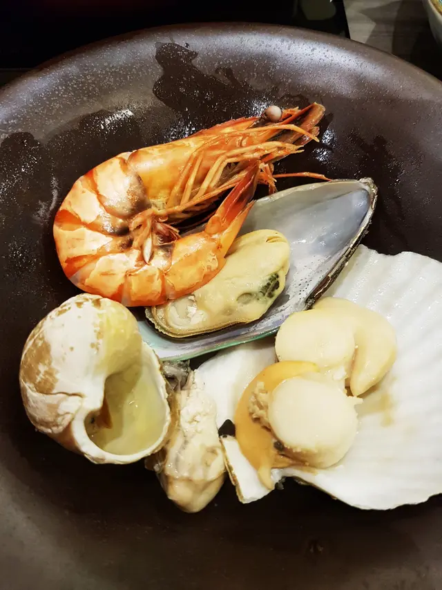 海鮮方面,其實之前已經提過,有帆立貝廣島蠔大海蝦青口魷魚翡翠螺,幾款之中,個人覺得,最值得推介就是大海蝦,肉質夠曬彈牙,入口爽脆鮮甜,屬 encore 之選。