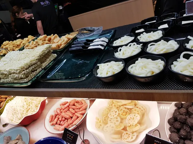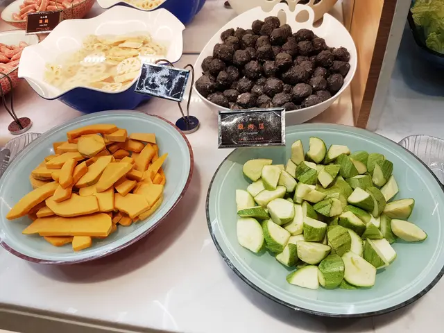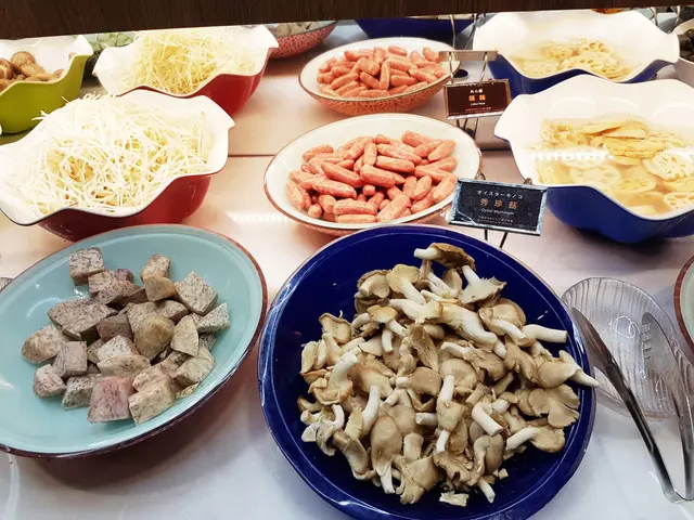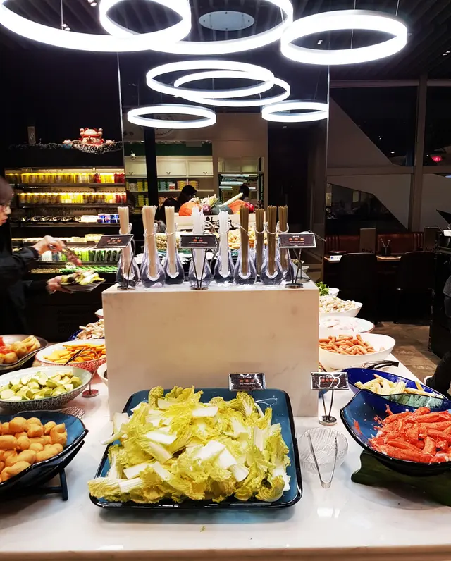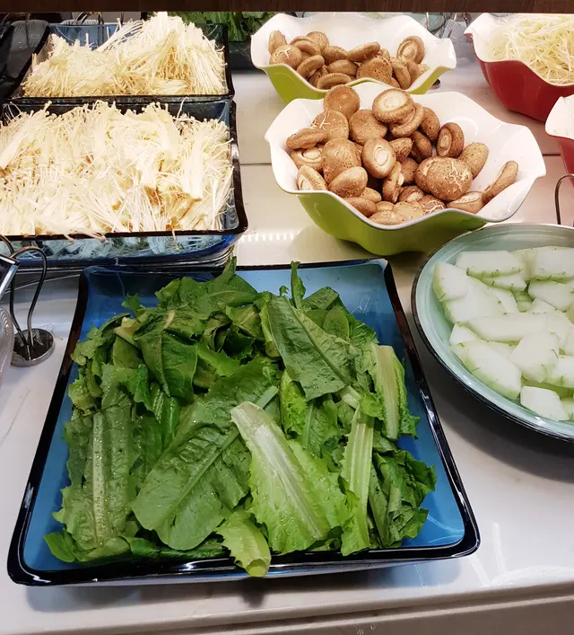 至於火鍋配料方面,除了有吸睛的墨汁墨魚丸外,還有白雪雪的蝦滑、芝士腸、台灣香腸、清甜的粟米、大大隻的鮮冬菇、鳴門卷、雲耳仔、蓮藕片、南瓜、竹輪、豆卜、銀芽、冬瓜、金菇、唐生菜、翠玉瓜、秀珍菇、芋頭、番茄、娃娃菜、京蔥、鱈場蟹棒、玉米筍、油麥菜、手打烏冬、芋絲、公仔麵等等,如果全部每款都試一點的話,肯定無 Quota 再吃甜品