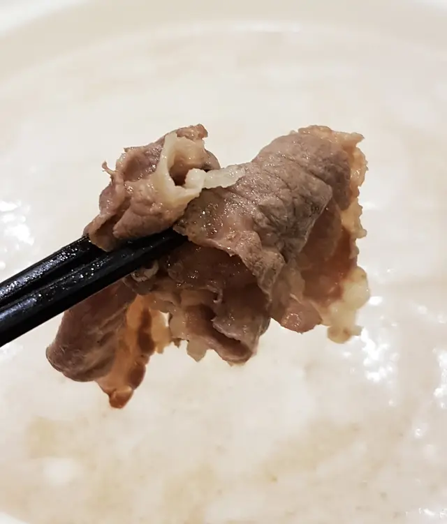 接著當然是輪到品嘗兩款澳洲和牛,挾起一看,單以賣相來說,已感覺到是高質出品。果然不出所料,每片牛肉的雪花紋都非常細密,而且切得很薄,挾起放湯一灼,入口即溶,既柔滑又富脂香。