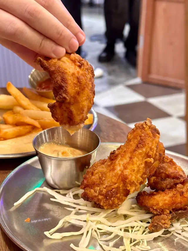 本來以為雞胸會好柴,點知超級juicy!外皮炸得金黃香脆,肉質嫩滑多汁。配埋微辣沙律醬,清爽解膩,當配菜perfect👌