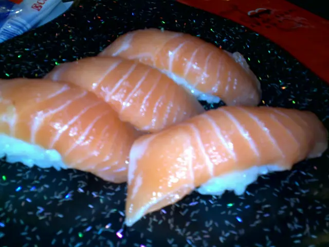 三文魚壽司做特價,$3一件,但現在開始,每人只限點三碟特價的!大家小心