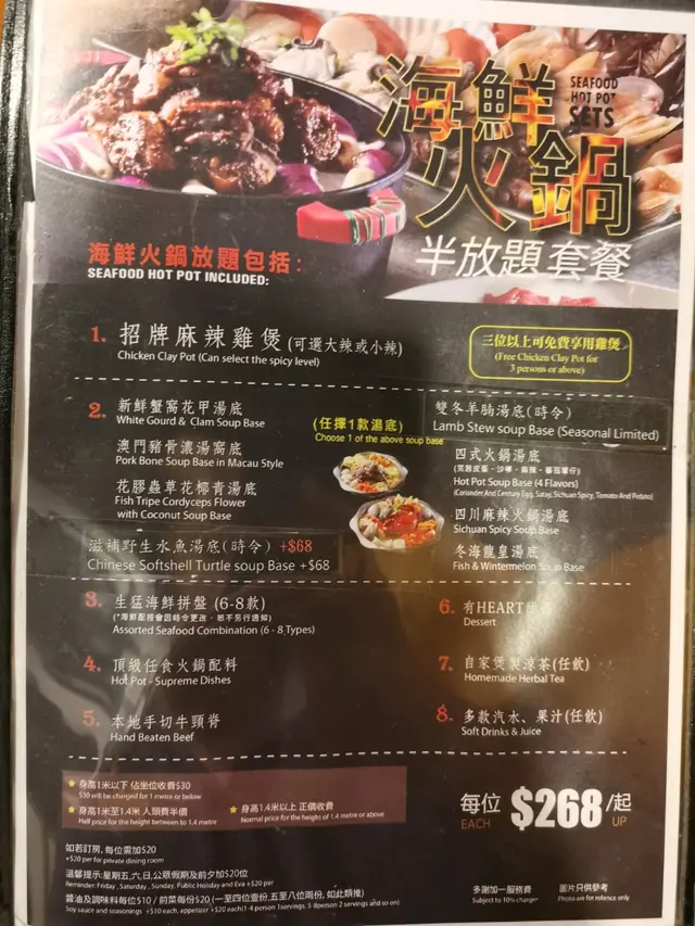 特別的半放題海鮮火鍋 MosleyHui等级42019-11-10520 浏览 关注 最近天氣轉涼,想起這家海鮮火鍋店22除了主打的雞煲外,該店還有幾款不同的湯底,而我們選了新鮮蟹窩花甲湯底2大閘蟹未上湯底前,先上了兩隻大閘蟹,鮮甜多羔2生蠔 然後每人一隻生蠔,新鮮肥美2生猛海鮮拼盤 到了火鍋主打的生猛海鮮拼盤,有鮑魚及元貝等,同樣新鮮甜美2本地手切牛頸脊還有本地手切牛頸脊,紋理平均肉味十足222美國肥牛其實除不能添加的食物外,還有不少可以任點的選擇,有大量的丸類、蝦及脆骨腩、美國肥牛等等2自助蔬菜而且還有蔬菜區任取2多款汽水、果汁任飲當然少不了任飲,選擇亦不少2有HEART甜品最後還牛奶甜品,作了一個完美結局以上食记乃用户个人意见 , 并不代表OpenRice之观点。2分享特別的半放題海鮮火鍋 新南苑私房菜火鍋鷄煲 (華僑商業中心) https://s.openrice.com/QrLT0tSas00检举 张贴 评分5味道4环境5服务5卫生4抵食推介美食大閘蟹生蠔生猛海鮮拼盤美國肥牛自助蔬菜多款汽水、果汁任飲有HEART甜品本地手切牛頸脊用餐日期2019-11-05用餐途径堂食人均消费$316.8 (晚餐)