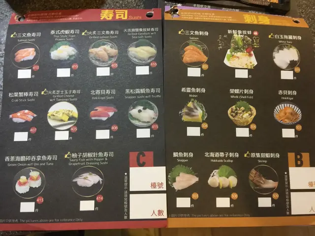 有前菜、壽司、手卷、刺身、炸物、燒烤、料理等,
