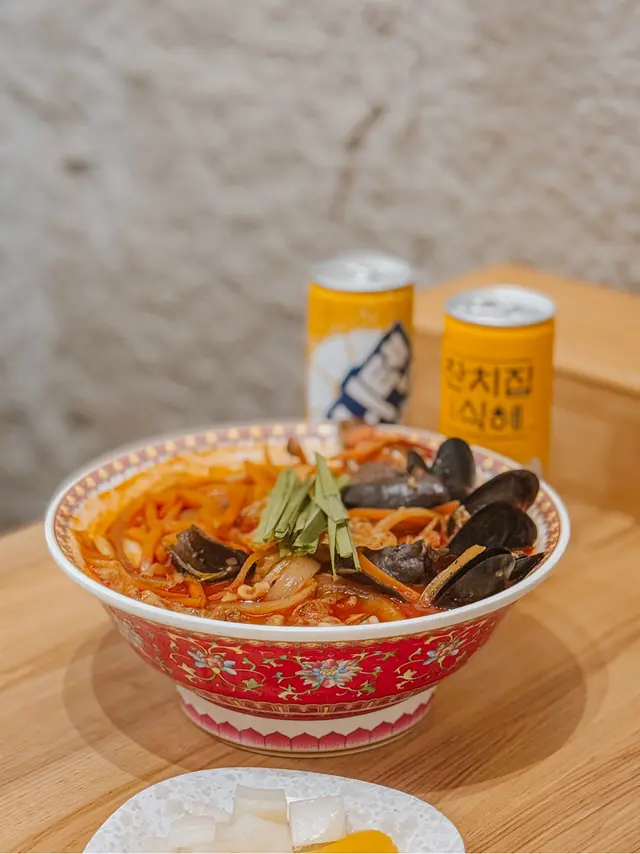 面頭放滿豐富的海鮮 惹味湯底裡是煙韌的麵條