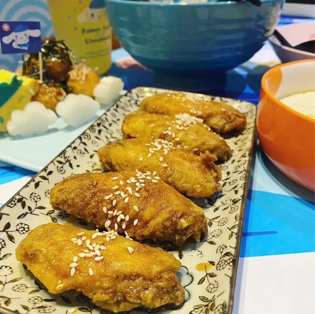 富山雞翼外表望落去平平無奇,味道鹹得嚟好上癮,配上白芝麻添加咗一種香味