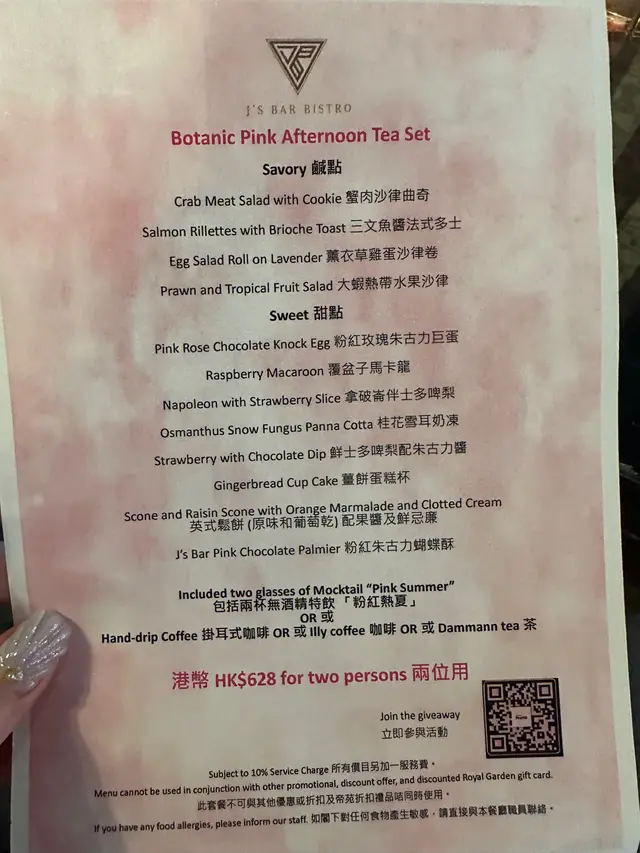 環境靜靜地又傾到計 整體來講 依個tea 絕對岩哂少女心鍾意粉紅系嘅朋友仔 好味得嚟又打卡able 。 Tea set 相對精緻 如果唔夠喉想另添嘢食嘅就可以睇下枱上嘅幾款咸食可以嗌。