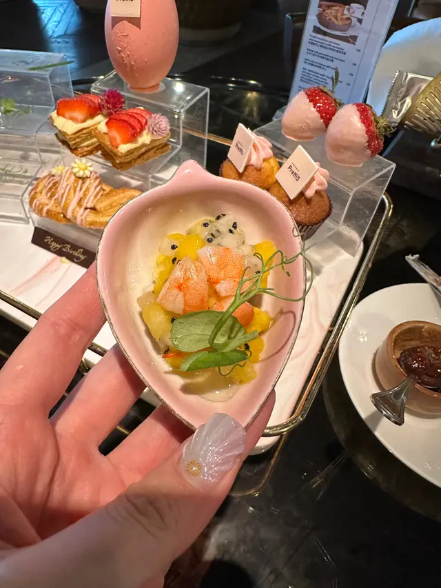 依set afternoon tea 有別於傳統3層果種afternoon tea 碟架 ,似一個tray咁😆充滿粉紅感~ 鹹甜點都出色 帝苑餅房出名嘅蝴蝶酥依然保持到水準 好味道😋夠酥。不過我覺得佢個鹹甜比例如果可以一半一半 或 鹹點多一點會更加吸引~