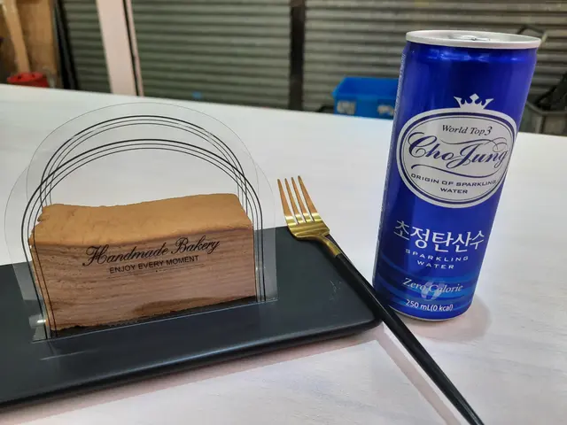 餐廳提供几款飲品,但個人比較喜歡有氣礦泉水。 嚐過几口蛋糕,以有氣礦泉水來使味蕾清新一下,這就可以完美地享用千層蛋糕。
