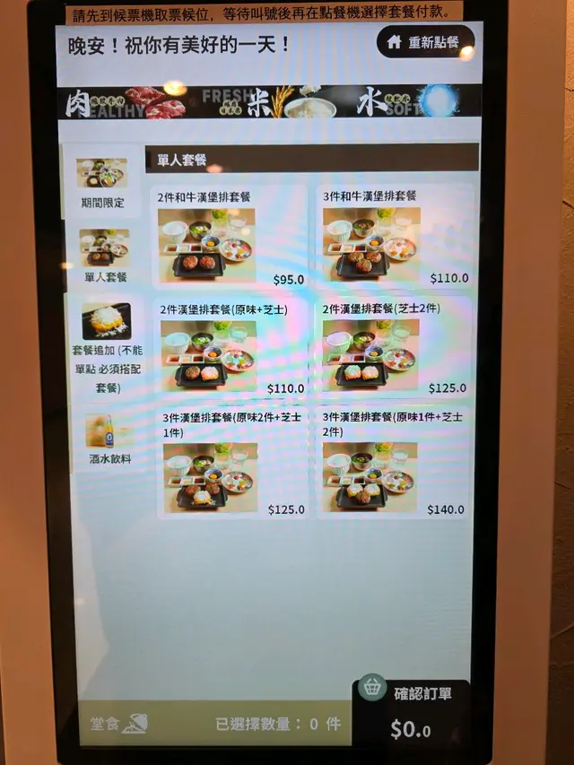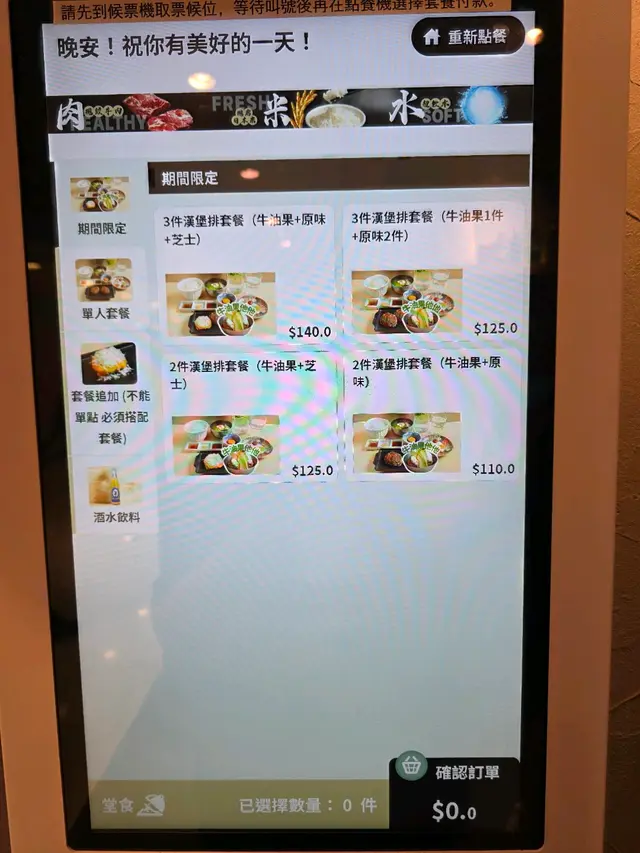 餐廳有2種套餐,一般係兩件漢堡扒或三件漢堡扒選擇,我哋兩公婆每人都叫左三件漢堡扒套餐!我自己就揀左$140三件漢堡扒套餐,牛油果漢堡扒、原味漢堡扒和芝士漢堡扒,呢個套餐就可以試曬三種唔同口味嘅漢堡扒。而老公就叫左另一個套餐$125三件漢堡扒套餐,一件係芝士漢堡扒,另兩件係原味漢堡扒。
