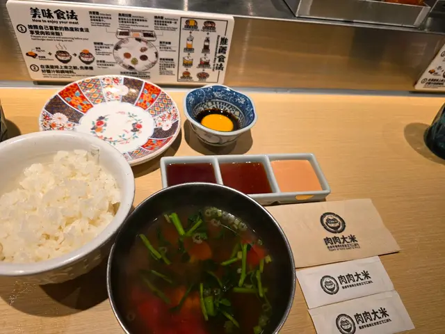 店員首先上飯同麵豉湯,麵豉湯都有好多蜆肉,佢地嘅套餐有多種選擇,最多可以有三款漢堡扒,主打日本和牛漢堡扒同埋芝士和牛漢堡扒。套餐中仲有一隻醬油日本蛋、西蘭花、麵豉湯同埋白飯,白飯、西蘭花和湯可以無限追加。