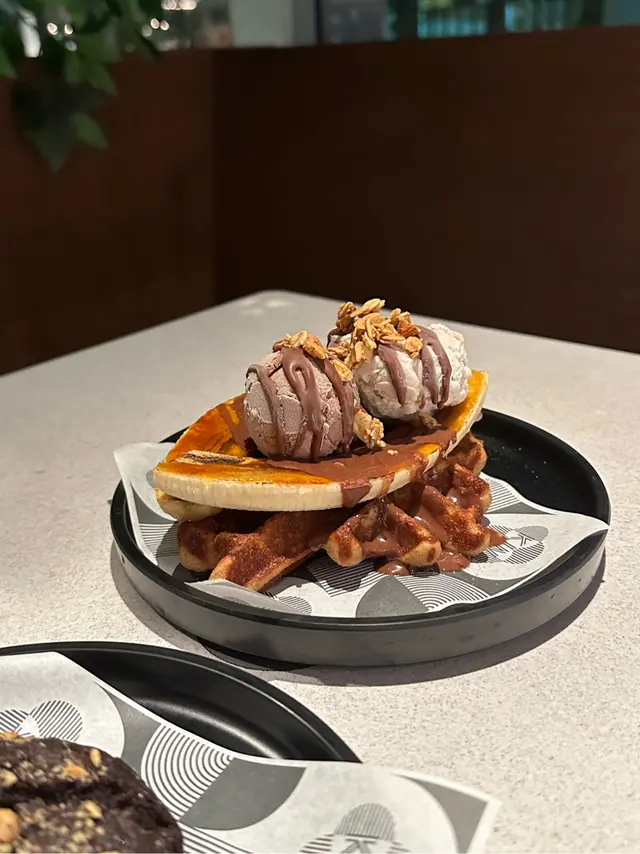 香蕉船係港式甜品中都算係經典,呢度嘅香蕉船,除咗有雪糕同香蕉之外,仲有一大塊窩夫🧇窩夫微熱,口感微脆,與冰冷又柔軟嘅雪糕對比強烈。雪糕味道一濃一淡,口感好豐富