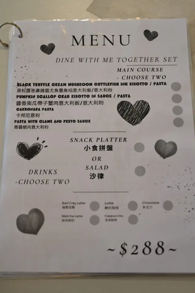 二人餐:兩款主菜+小食拼盤 +沙律+兩杯飲品$288