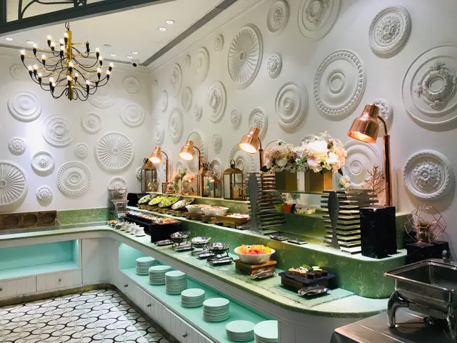 餐廳裝修非常之豪華, 白色再加tiffany色做主調, 非常之elegant