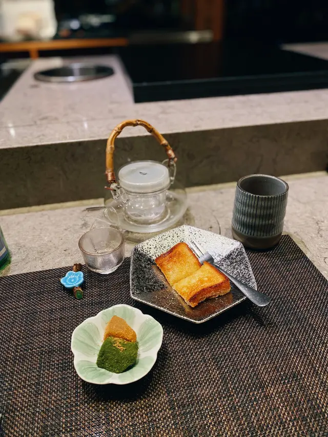 之後甜品有🍡蕨餅同埋焦糖煎多士:蕨餅軟糯唔黐牙,個多士香脆易入口,用嚟埋尾好唔錯。
