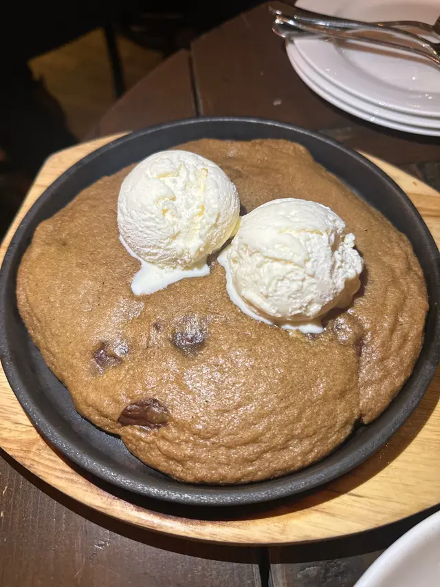 甜品方面,Skillet Cookie(鐵板曲奇)熱辣辣上枱,配雪糕一齊食,冰火交融超正 🍨。飲品就係Fruit Punch同 Luigi’s Lemonade,清爽解膩,舒服到不得了 🥤。