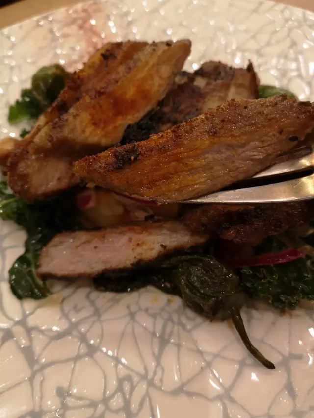 朋友揀咗「烤伊比利亞豬胛心肉」, 頂級嘅西班牙特產豬肉, 製成火腿已經非常有名, 估唔到烤過更能突顯肉質嘅嫩和甘香, 肉味超凡。