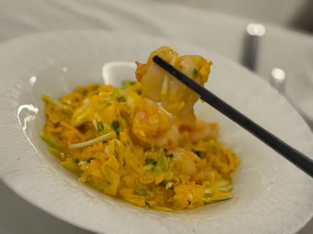 ➡️韭黃滑蛋炒蝦球:🤍🤍🤍 這道菜比較普通,蝦球新鮮飽滿,但韭黃的味道有點蓋過蝦的鮮味,滑蛋的口感也稍嫌油膩。