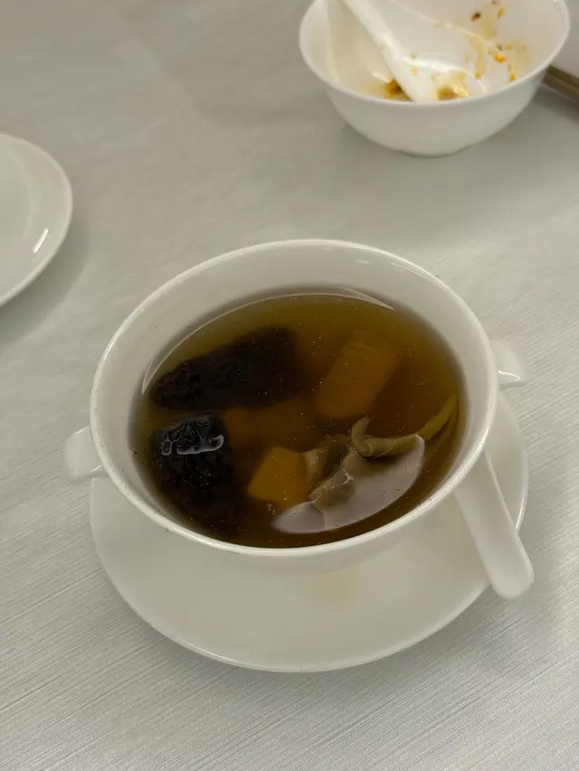 ➡️羊肚菌淮山螺頭燉雞湯:🤍🤍🤍🤍🤍 這盅湯絕對是精華!湯頭清澈,味道濃郁,羊肚菌的獨特香味和螺頭的鮮甜完美融合,雞肉燉得軟爛入味,淮山也增加了湯的營養價值,暖心暖胃。🥰