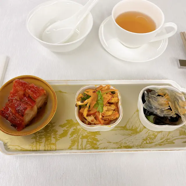 ➡️合和黑豚肉叉燒、涼拌紅蜇頭、麻辣手撕雞拼盤:🤍🤍🤍🤍 這道開胃菜拼盤,叉燒肥瘦適中,蜜汁均勻,入口即化。紅蜇頭口感爽脆,酸酸甜甜的很開胃。麻辣手撕雞麻辣鮮香,雞肉很嫩,三種味道層次分明👍。