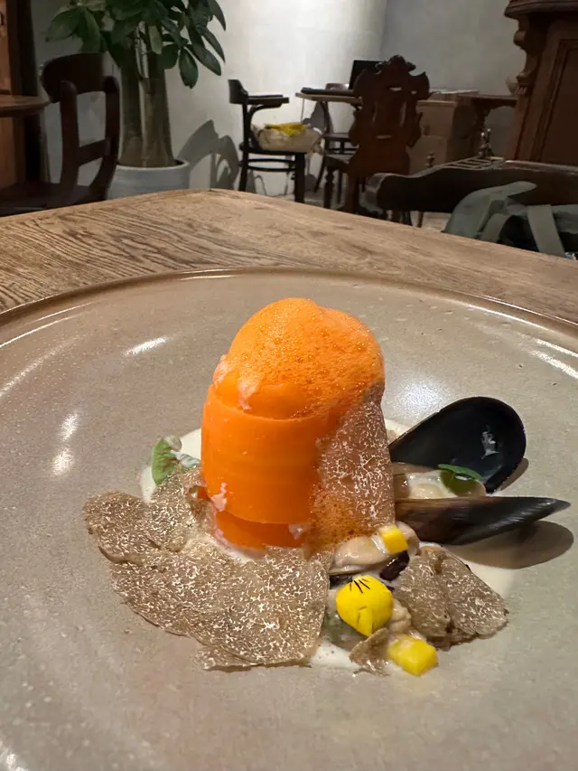 ❣️帶子慕絲黑鱈魚甘筍卷 配法蔥白酒,忌康青口汁 •甘符泡沫 •夏季黑松露