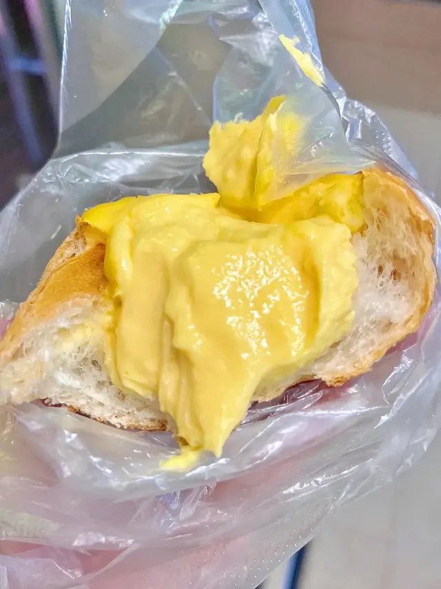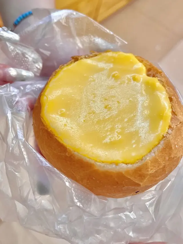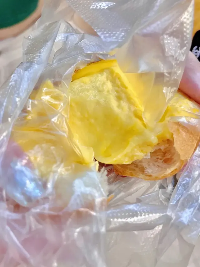 法式布甸麵包的外壳烤得焦焦脆脆的,吃起来有点像法棍的口感🥖。细腻丝滑的布丁一掰开便是疯狂流淌,浓浓的蛋香混合着麦香🌾,但稍微有点甜,多吃几口就有点腻了
