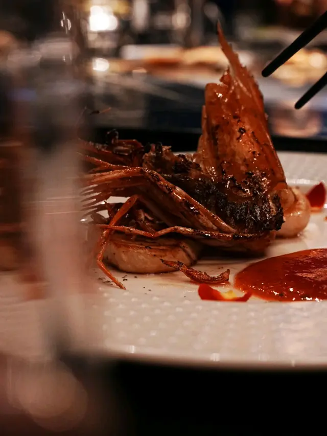 蝦肉爽彈鮮味, 蝦頭入面仲有蝦膏, 配上微辣嘅蕃茄汁,食落開胃惹味