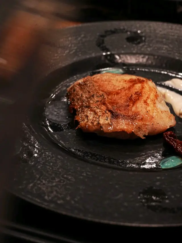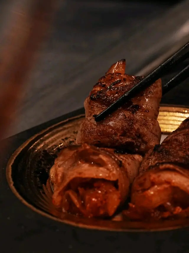 黑豚肉包住左韓國泡菜, 配搭新穎有趣, 食落酸酸辣辣, 就咁食已經好惹味, 配上清甜既蘋果蓉可以中和番個油膩感, 就咁食蘋果蓉都好好味呢