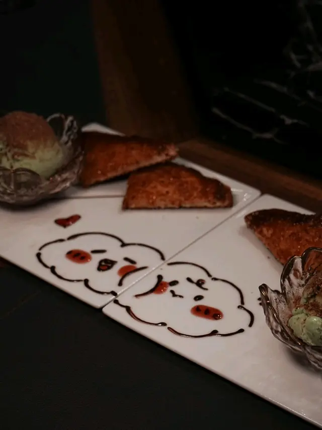 甜品除左有雪糕仲有車車最愛嘅焦糖脆多士, 甜甜脆脆嘅多士沾上開心果雪糕, 為豐富嘅晚餐劃上完美嘅句號!