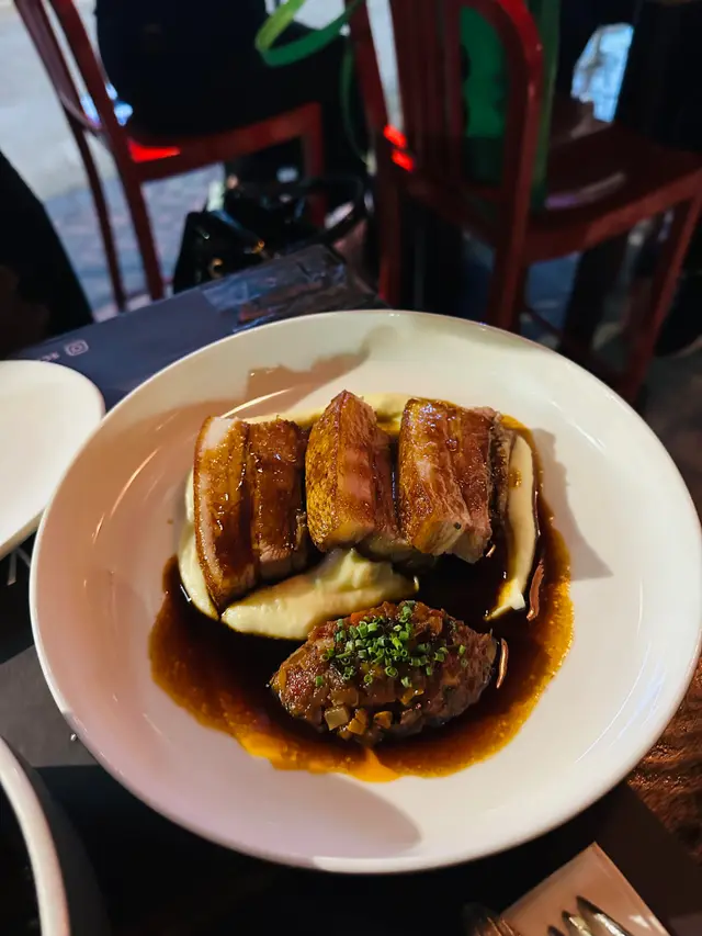 生日甜品滿滿儀式感 Willow Yellow等级42025-08-24535 浏览 关注 朋友生日,選擇咗嚟呢度慶祝,頭盤揀咗鵝肝、蟹肉餅,再加咗個龍蝦湯,三款都好好味,同埋份量都多,基本上食完頭盤已經飽咗大半。主菜我哋就叫咗個慢煮豬,同埋叫咗個tomato 🍅意粉。意粉就一般,冇乜特別,但係個豬就幾好味,雖然係幾肥嘅,因為好大舊肥豬肉,但佢煮得好香,係會令到你忍唔住食晒嘅。由於份量都多,我哋嘅意粉只係食咗少少,已經食唔到落去。甜品我哋就叫咗crème brûlée,另外餐廳都送咗甜品俾我哋慶祝生日,佢哋用個雀籠裝住個甜品,一拎出嚟真係好有儀式感,值得稱讚佢哋有一位外籍嘅女服務員,佢真係好細心,又好有笑容,不停咁同我哋講生日快樂🎂11以上食记乃用户个人意见 , 并不代表OpenRice之观点。赞好分享生日甜品滿滿儀式感 Scarlett Cafe & Wine Bar https://s.openrice.com/QrLT071bU00检举 张贴 评分3味道3环境3服务3卫生4抵食用餐日期2025-08-22用餐途径堂食用餐时段晚餐庆祝纪念生日
