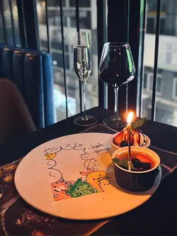 今晚重頭戲當然是生日畫碟甜品,預訂時可以通知餐廳卡通人物及慶祝字句,客製化服務夠貼心,可愛的角落生物畫碟令人賞心悅目,點上蠟燭,讓節日添上滿滿儀式感。