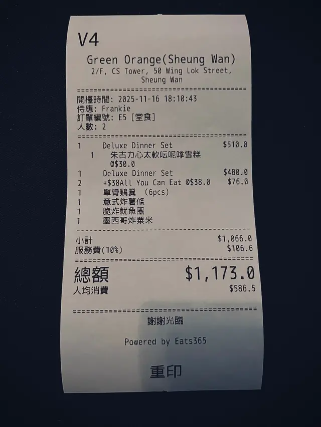 Deluxe Dinner Set 每位$480包括一杯餐酒、餐湯、前菜、主菜和甜品各一。